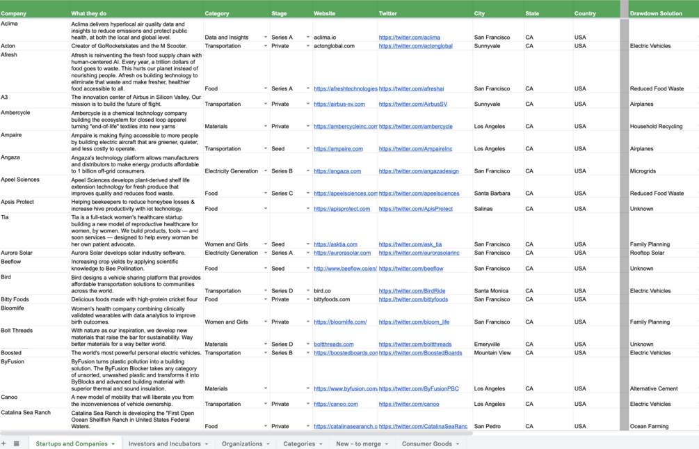 +800 Climate tech company list & +25 active VC Investors